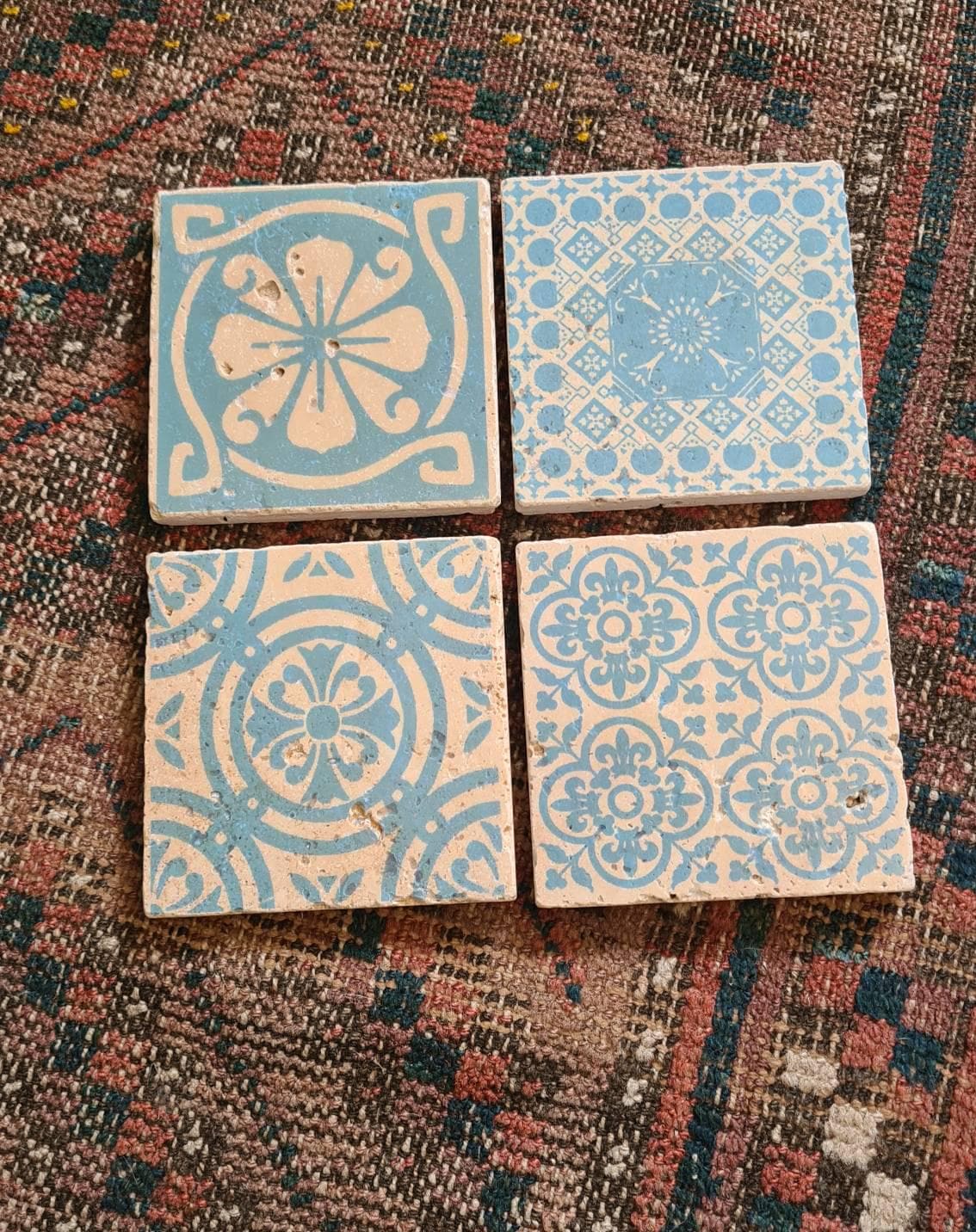 Our vintage tiles made from genuine travertine stone are a real eye-catcher. They are beautiful as coasters, as small gifts, and of course as wall decorations. They are also perfect for upcycling small pieces of furniture. Tables, dressers, or windowsills can easily be covered with our retro tiles, creating a completely new and enchanting look.